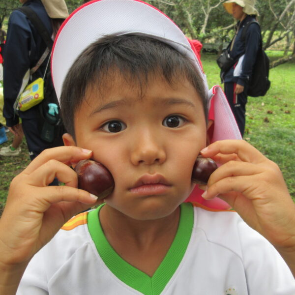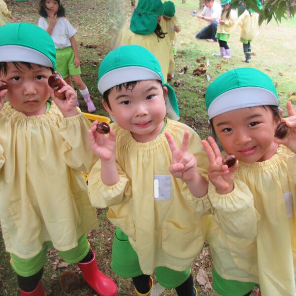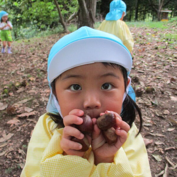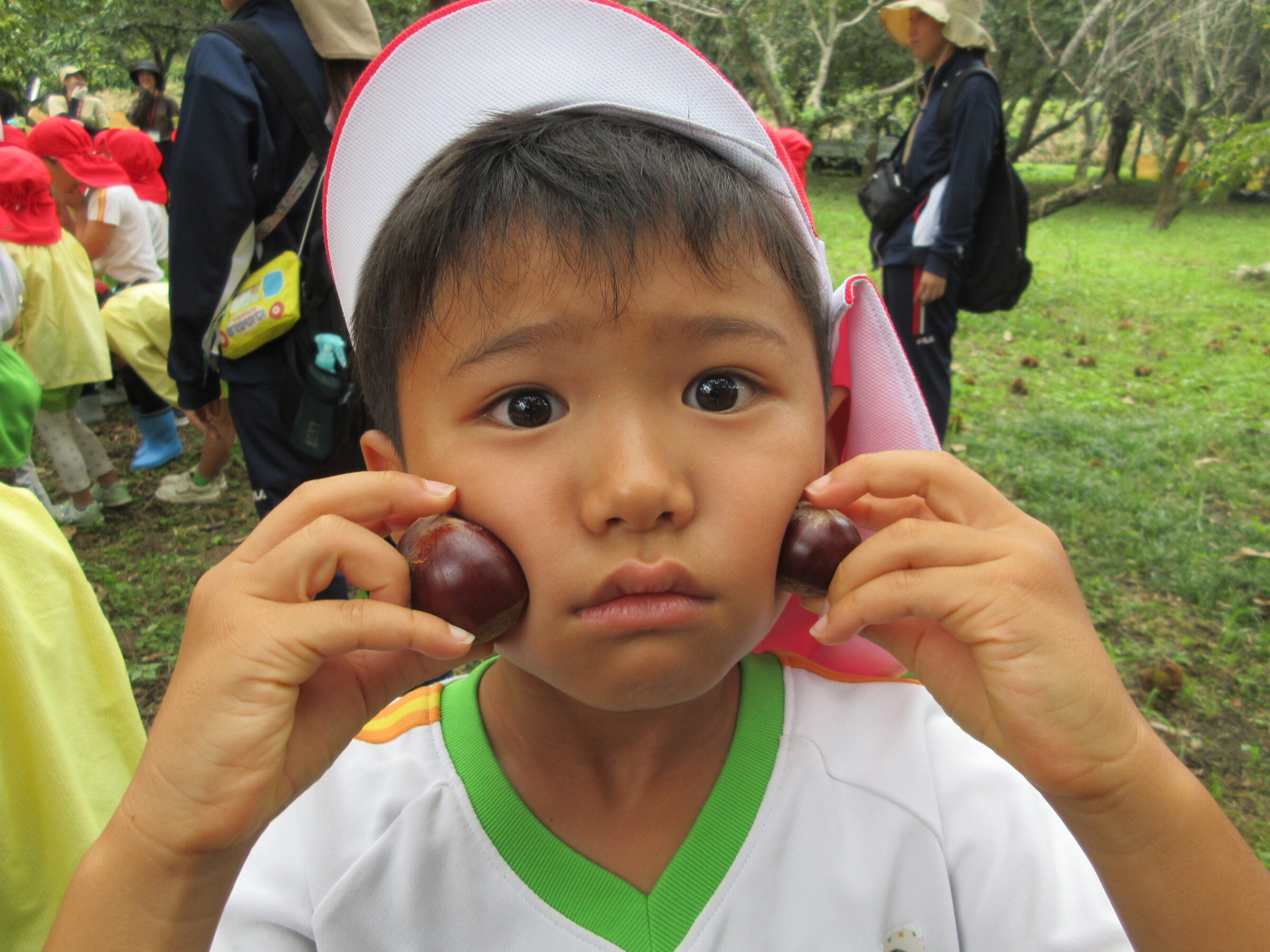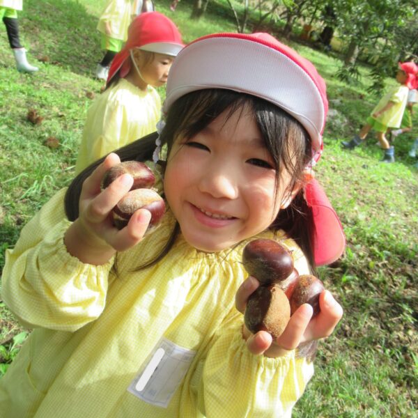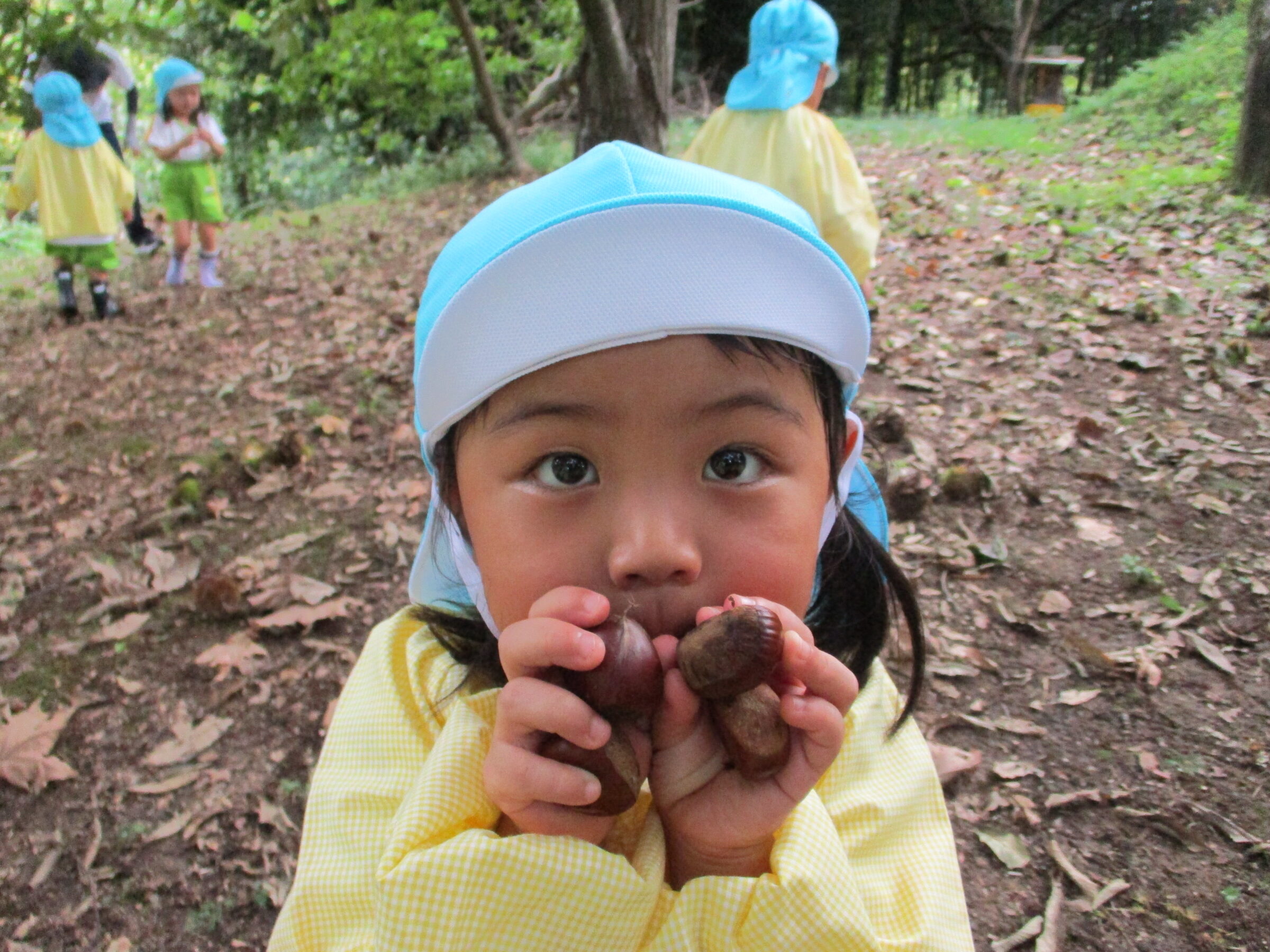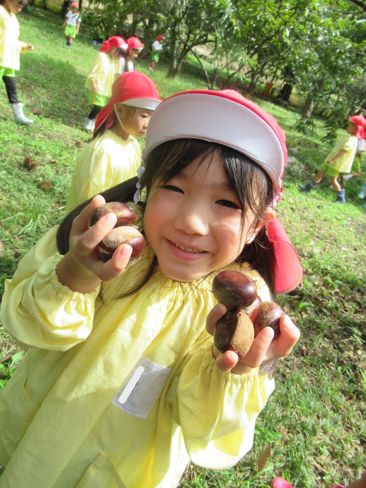 落ちている栗を見つけた時には「先生あった!!」 と目をキラキラと輝かせて