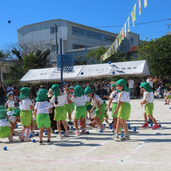 競技の玉入れでは、カゴを目掛けて一生懸命に投げていましたよ☆
