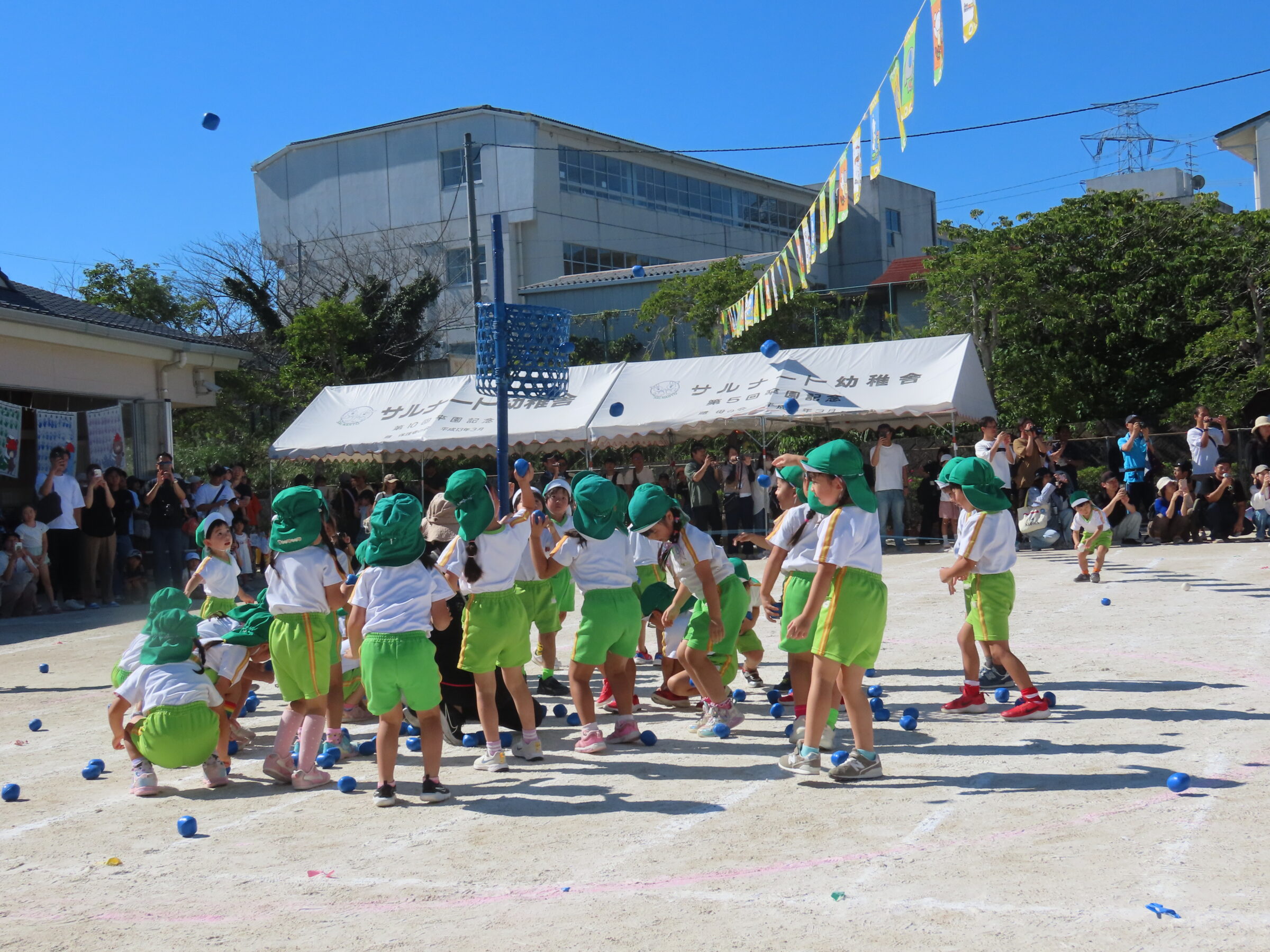 競技の玉入れでは、カゴを目掛けて一生懸命に投げていましたよ☆