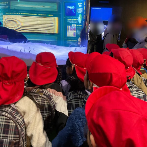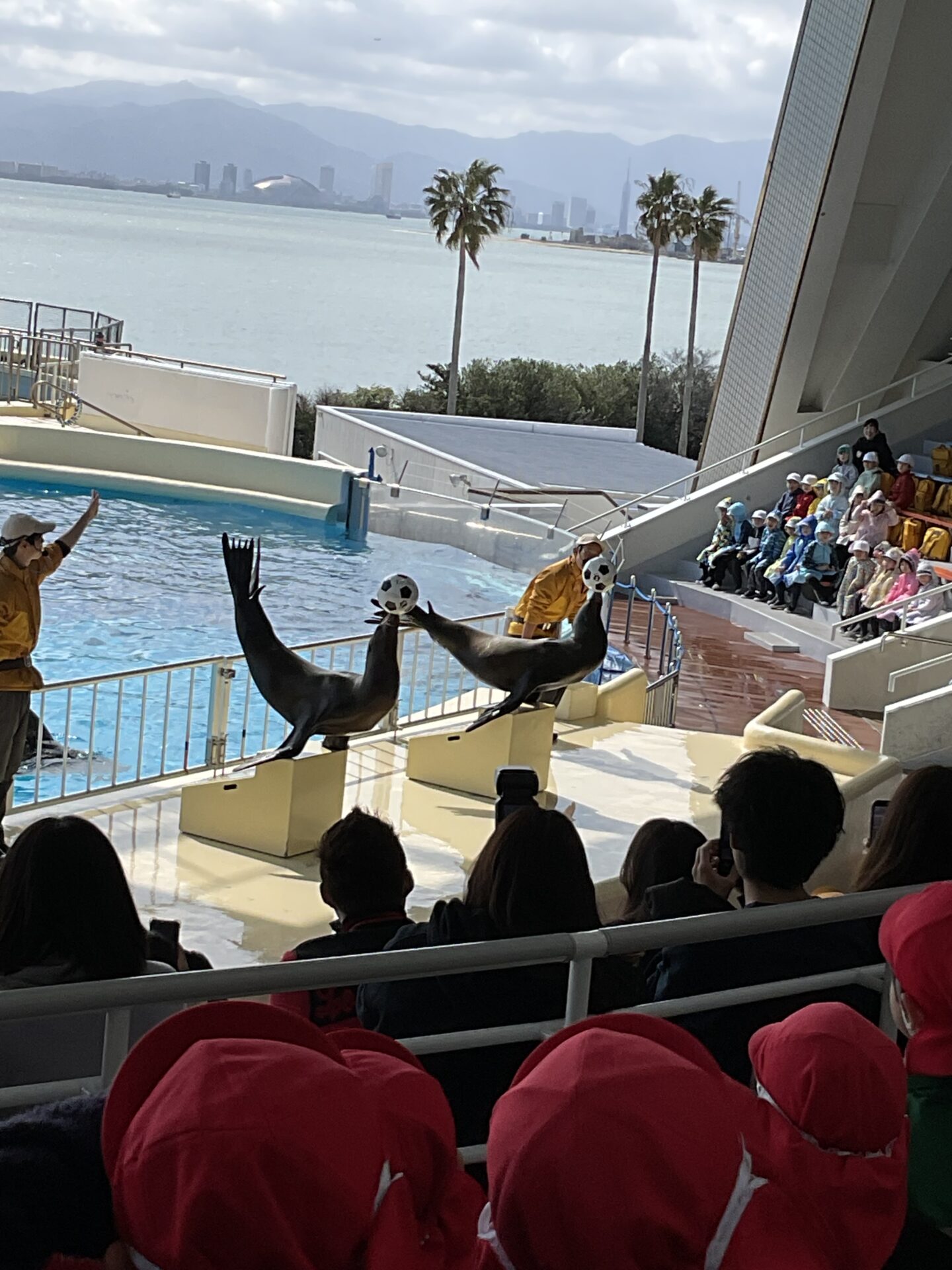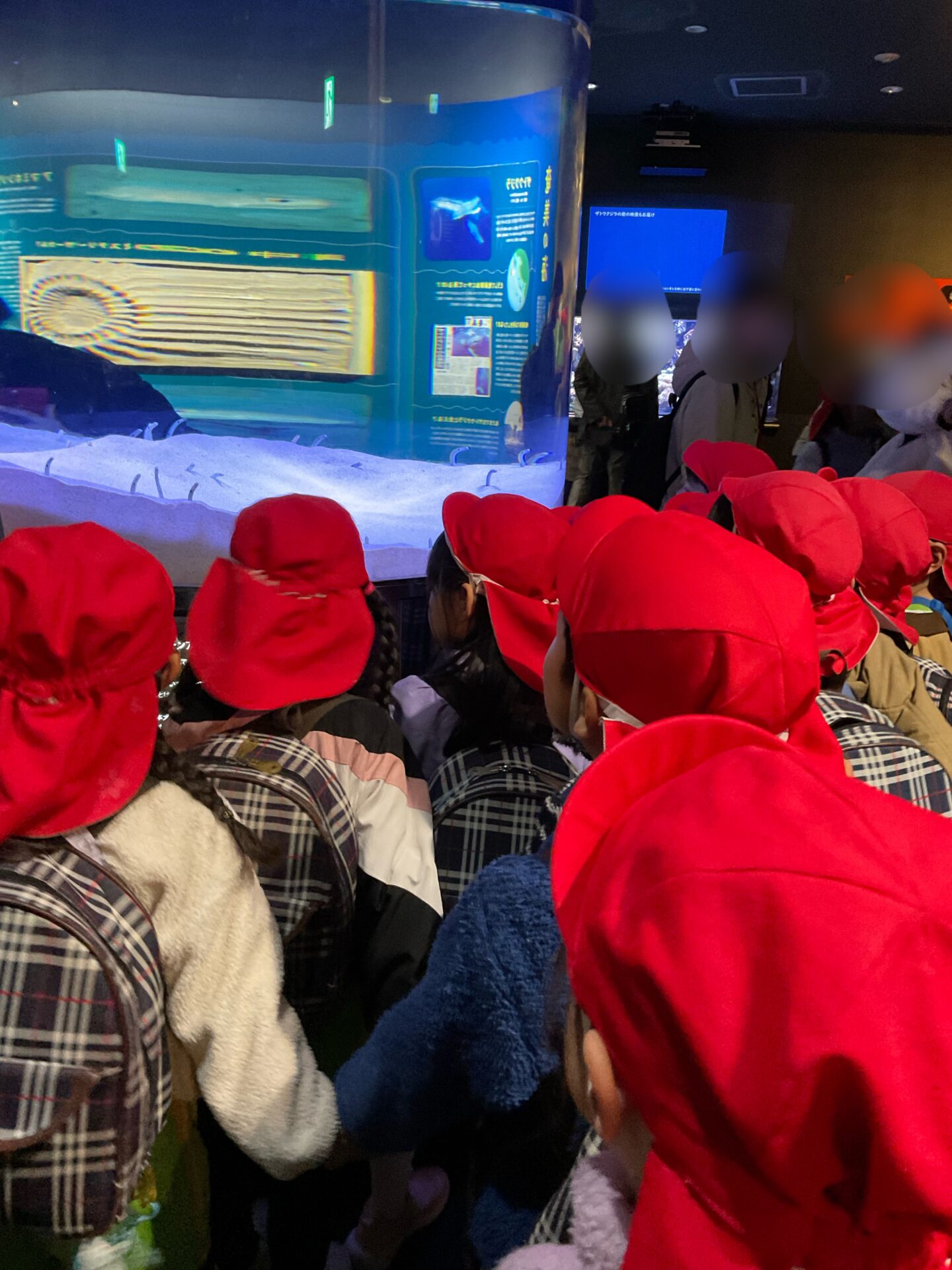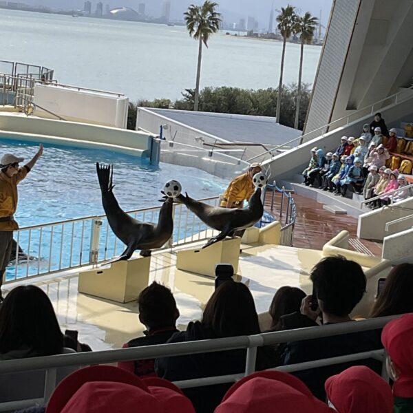 バスに乗って年長さんみんなでマリンワールドへ行きました。