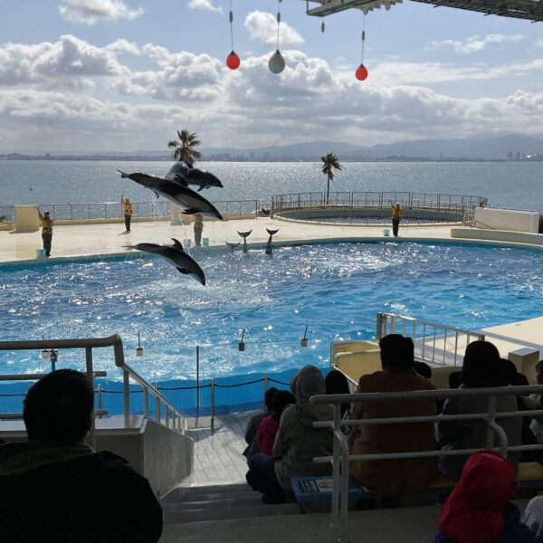 また、イルカのショーでは、どんどんジャンプするイルカの姿に