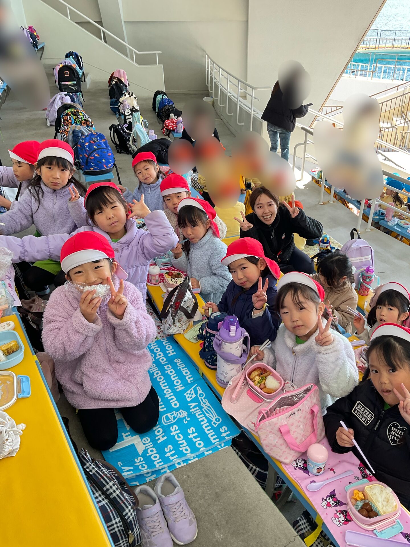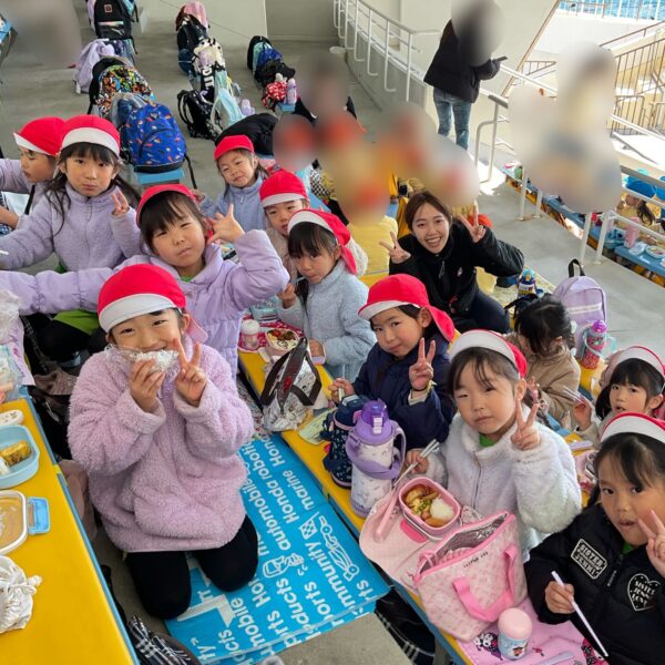 おうちの人が作ってくれた愛情たっぷりのお弁当をニコニコで食べていました🍙